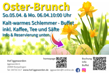 FRIESENGOLF ab 6,00 € 7,00 € Butjadingen Details Oster Brunch 2026 ab 23,50 € 24,50 € Butjadingen Details Frühstück am MEER ab 23,80 € 25,00 € Butjadingen Details Grünkohl Buffet oder Portion ab 14,50 € 15,50 € Butjadingen Details Iggewarder Suppentopf (Haumacher Eintöpfe und Suppen) ab 7,00 € 7,50 € Butjadingen Details Nach oben
